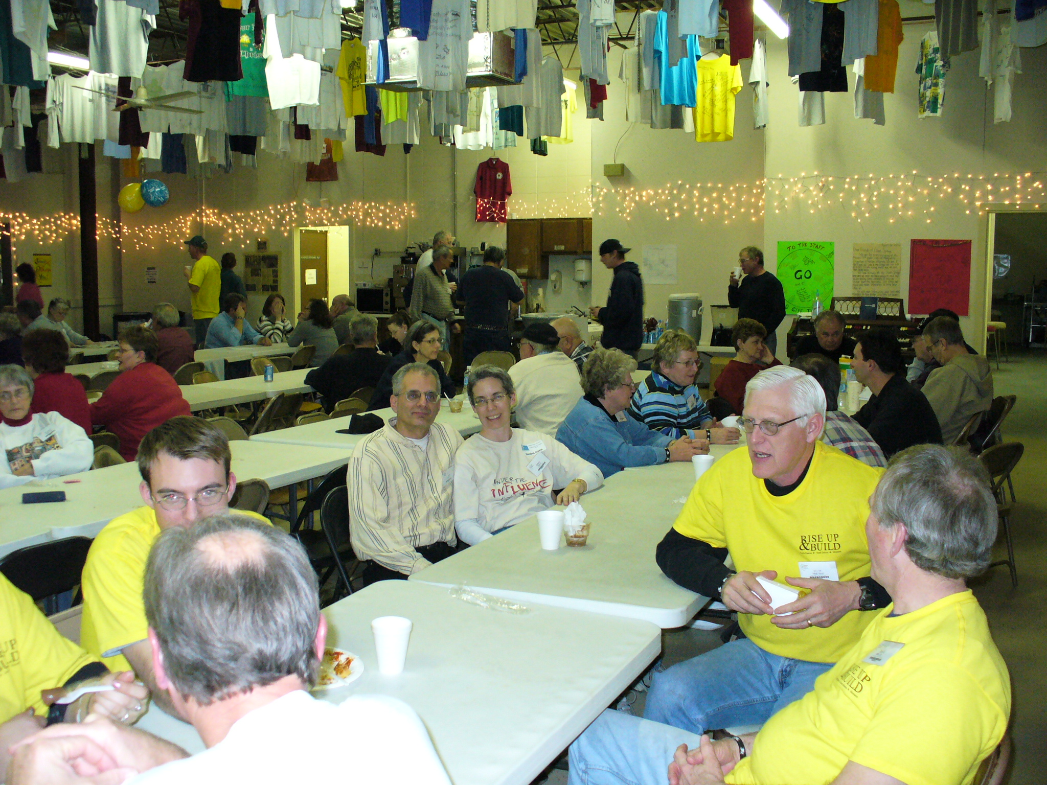 People from all walks of life are here helping: many are in home construction by trade, but most are just willing hands. This week I would say that about 2/3 of the volunteers are men, and I imagine that's typical. Many are retired, but there are also many who clearly are taking a week's vacation to help others. Besides our group of 75 from Southwestern PA, there are large-ish groups from Wisconsin and the Dakotas here this week, as well as small groups or individuals from about a dozen other states. It's truly inspirational to see so many people so willing to give of themselves to help their "neighbors".