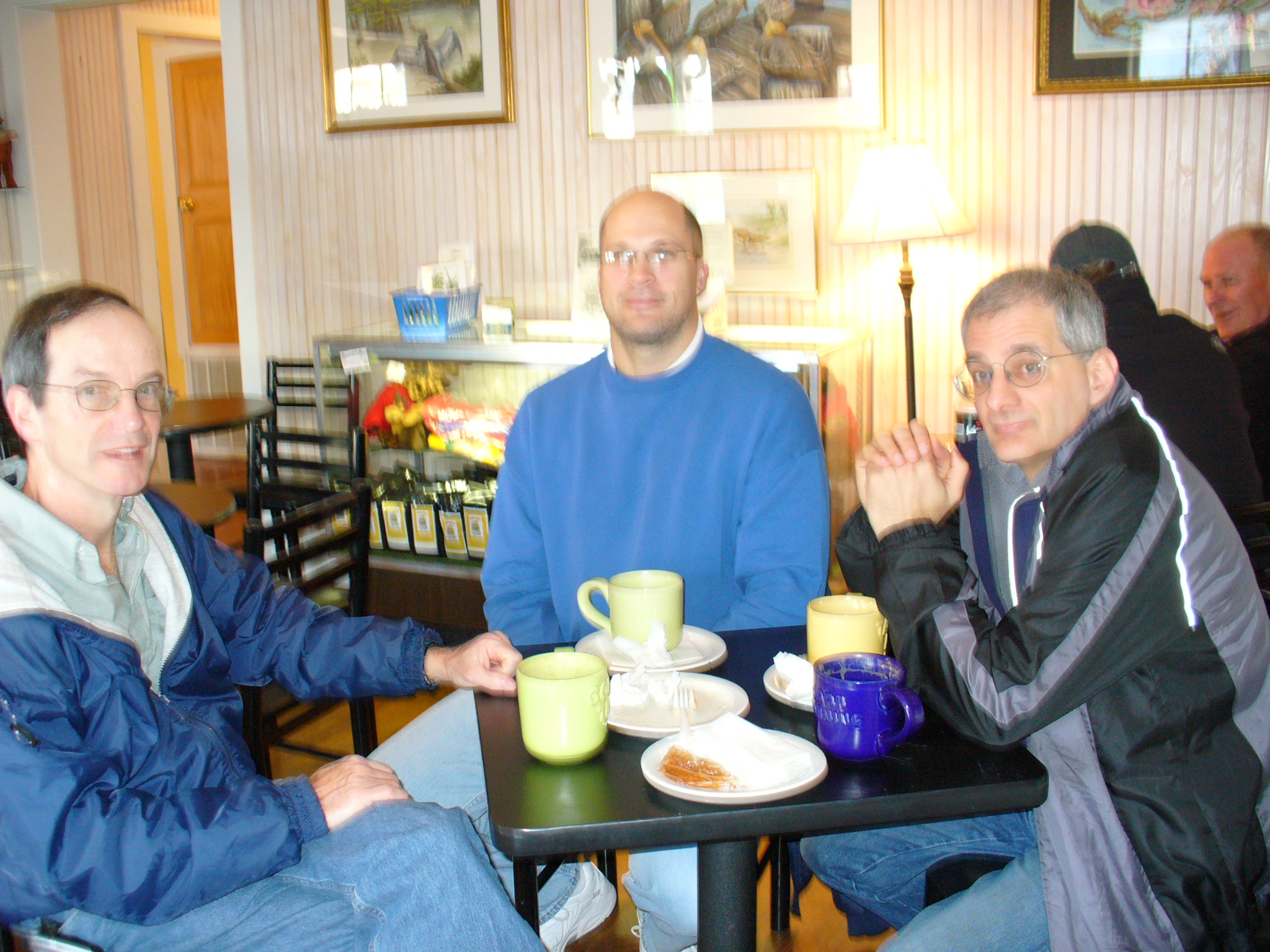 Since Saturday morning breakfast was scheduled to be just cold cereal and fruit, and since our buses weren't leaving till 9:30, we arranged Friday night to go out with Frank and Duane for real coffee and baked goods at 7:00 (sleeping in!), to the Mocha Moose, a place we discovered on our walk-about Friday afternoon.