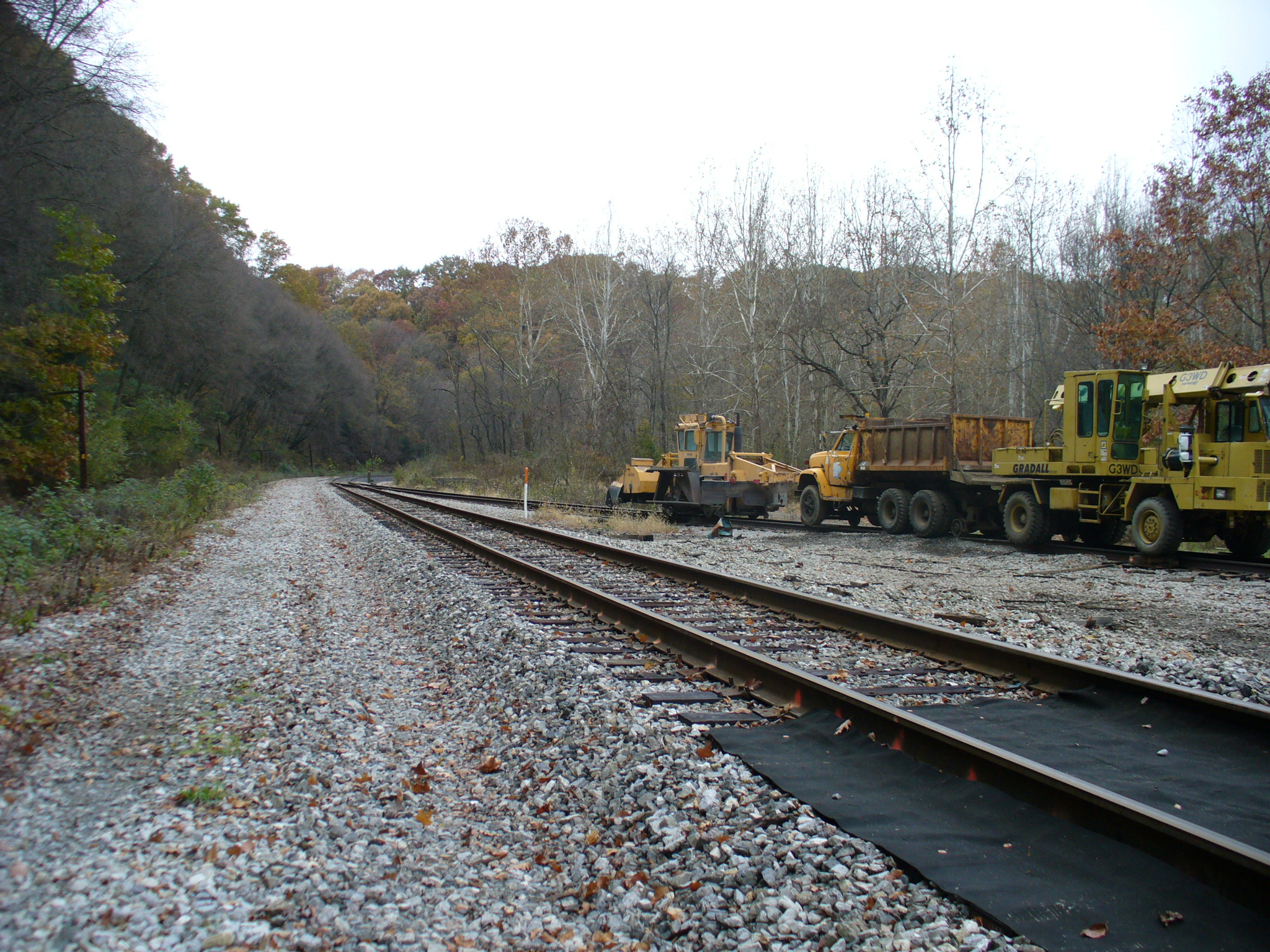 After a good while along the creek, the trail came out onto a rail line, and turned right along it. There was a bunch of rail maintenance equipment on a siding just before we came out onto Wildwood-Sample Rd. The trail went along the road for about 1/4 mile, if that, and then cut down over a bank to a creek again. Unfortunately it was about then that it was 3:00, and we figured that needed to be our time to turn around in order to be sure to get back before dusk. We did “cheat” and walk straight to our cars at the end, rather than taking the 10-minute detour around the pond.