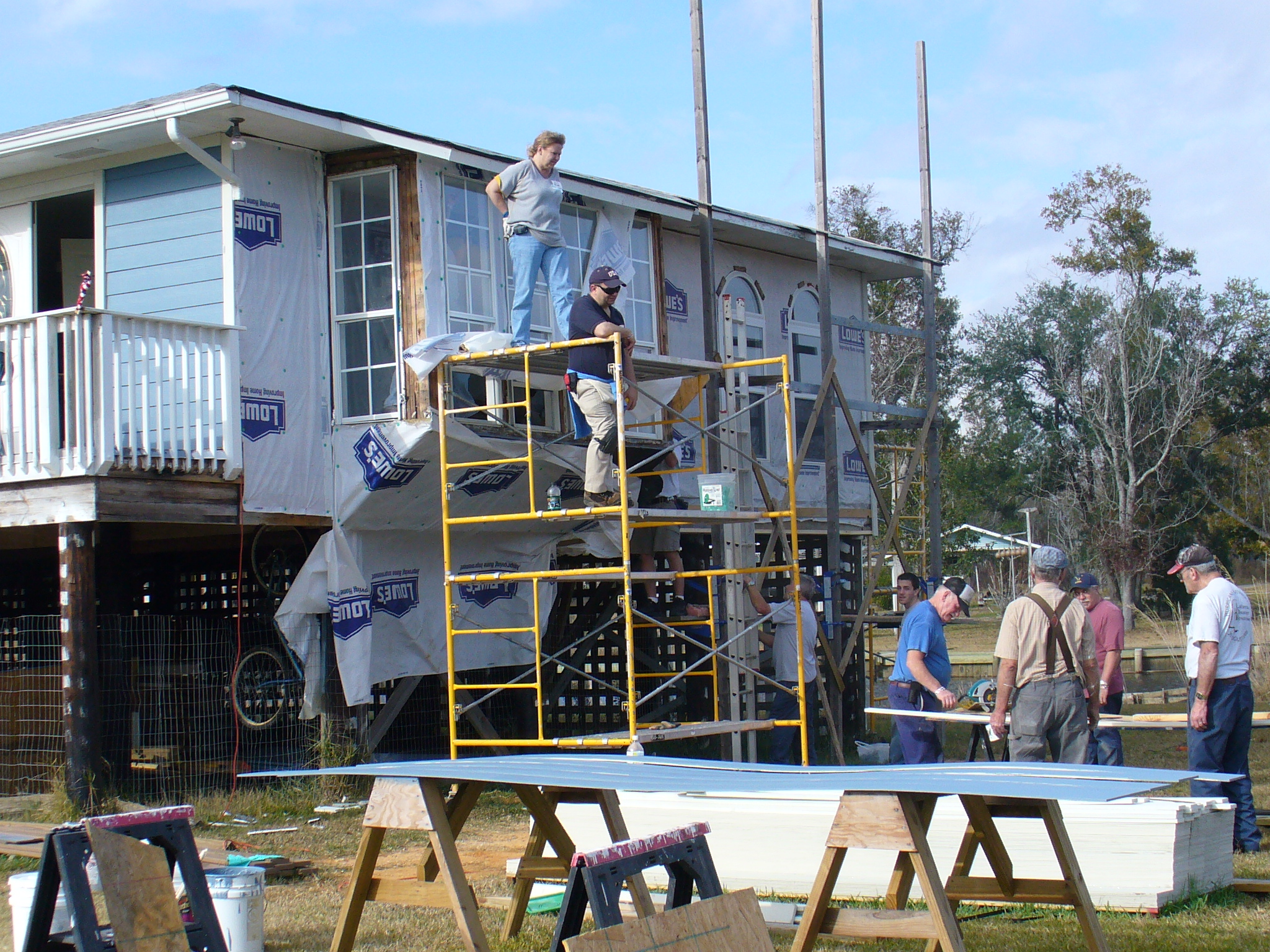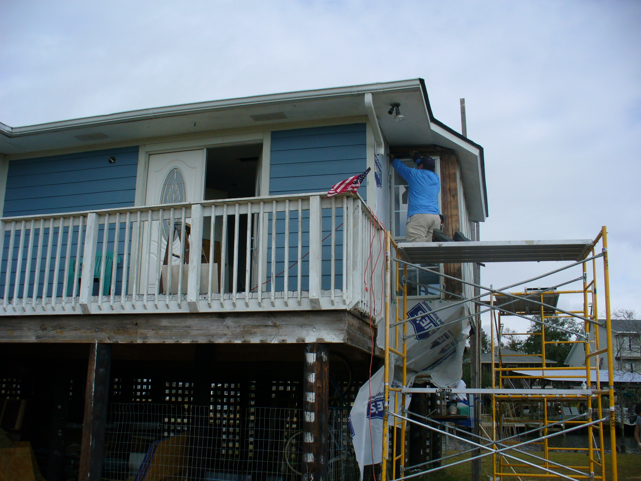 After lunch, we started to paint white exterior trimwork, while continuing to paint siding strips.