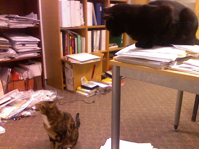 (we got them as kittens when we moved in here almost 5 years ago – they're sister and brother and had been abandoned near our friend's farm, who knew we were looking for a "rodent control system" – but as it has turned out, they're just spoiled pets!)