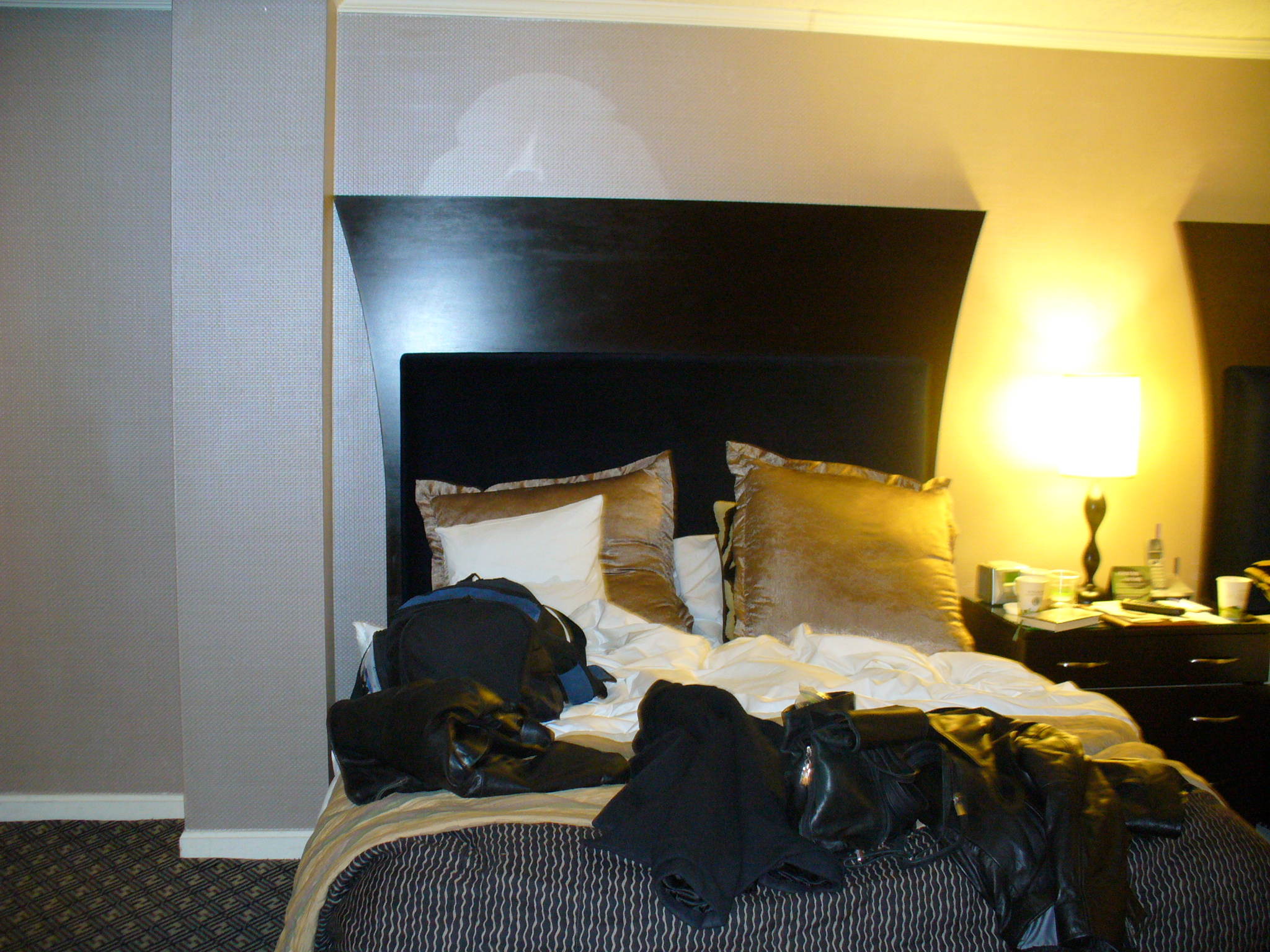 Amenities: Aveda toiletries (rosemary-mint shampoo, and the like, mmm), leopard-print bathrobes (and for-purchase PJ's in the closet), nice little kitchen and office space, complimentary goodies (wine at 5:00 [which unfortunately we missed], cookies & milk at 10:30 [a little disappointing to find cookies meant Oreos though], organic coffees & teas in the morning), a decent selection of magazines in the room (including Body+Soul, one of my favorites). Parking is valet-only, but as I mentioned above, it was free to us, and in any case included in-and-out privileges upon just a call to the front desk, so it was fine for a city hotel. Another nice feature was that after I made my online reservation, I received an email offering $5 upgrades if they were available when we checked in (for example, to a "cardio" room which included a stationary bike, or an "entertainment" room which included more of a home theater arrangement). Free wireless internet, though we didn't have any computers with us. I'm giving it a 4.5.
