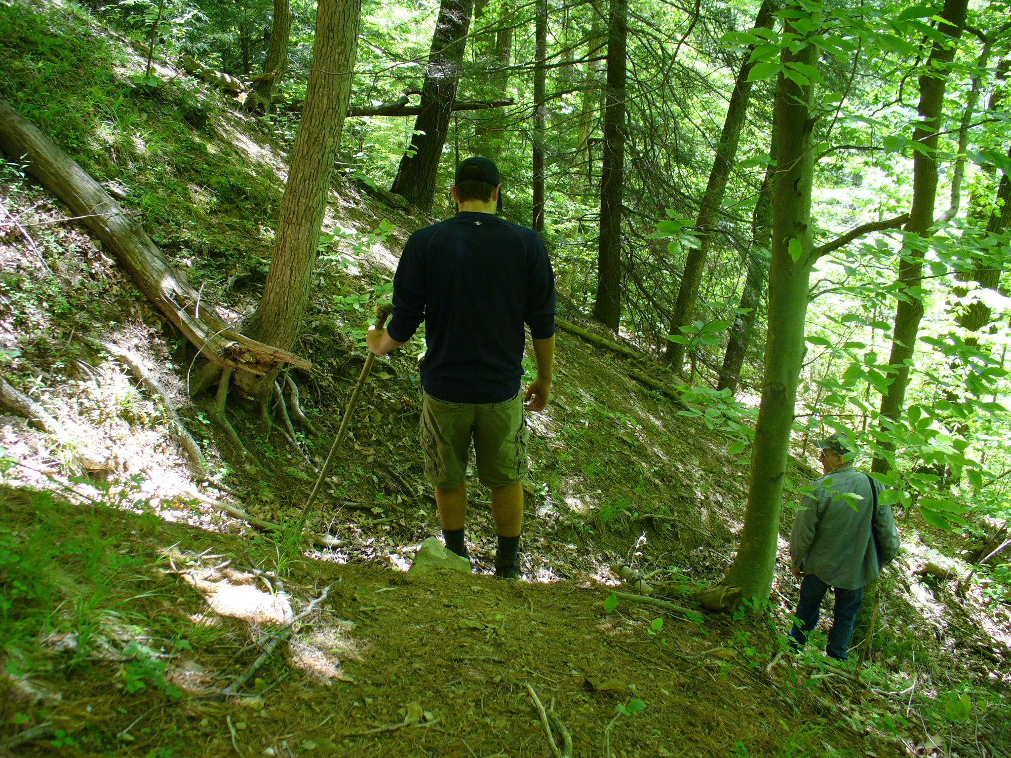 We were hoping to find a spot near a stream for some water, but what I hadn’t realized was that all the winding the trail did was because it was on a ridge, so any stream beds we crossed were dry at that elevation. After we set up camp, we each went out to try to scout out some water, but we all came back empty. I did find a little stream that I thought I could get at least some water from, but when I looked up, I saw it came right out of a cow pasture. We had water purification stuff with us of course, but no sense tempting fate that much! We ended up buying a couple of gallon jugs of water Saturday night when we hiked out to go to the hockey game. I guess we’re too used to the places we camp in PA, where there’s always plenty of water available to treat and boil.