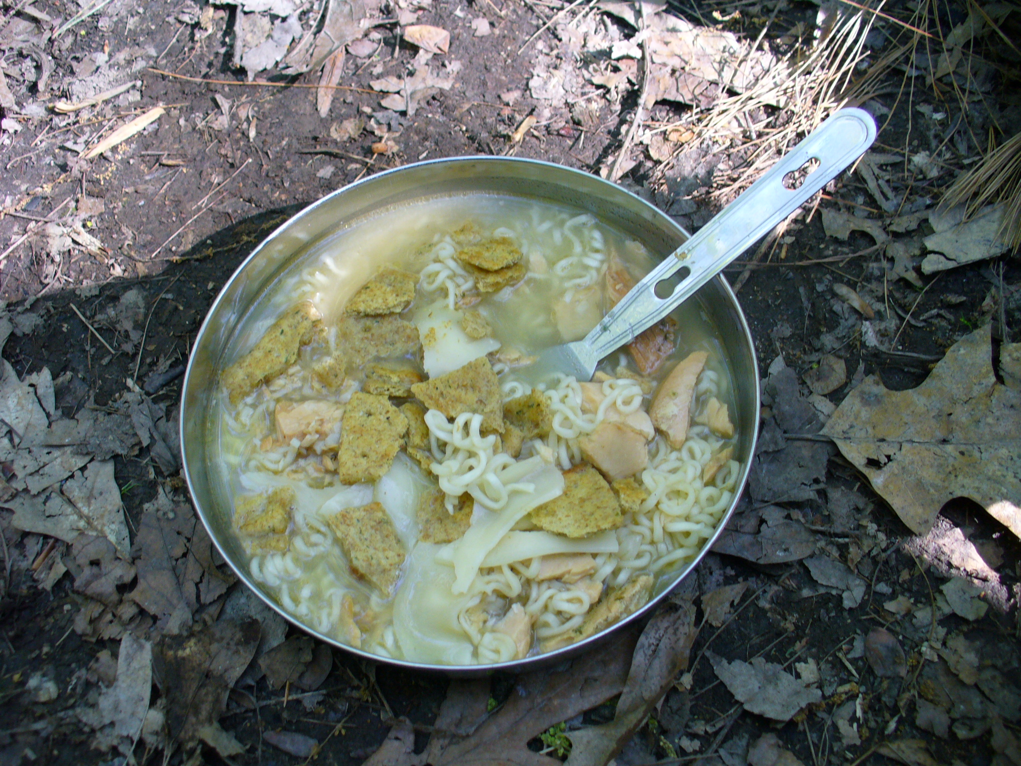 Dinner Saturday was ramen noodles with lemon-dill salmon (from a vacuum pack), with garlic crackers and provolone on top. Then we hiked back to the car and drove to a bar to watch the Pens get blown out by Detroit. Boo!