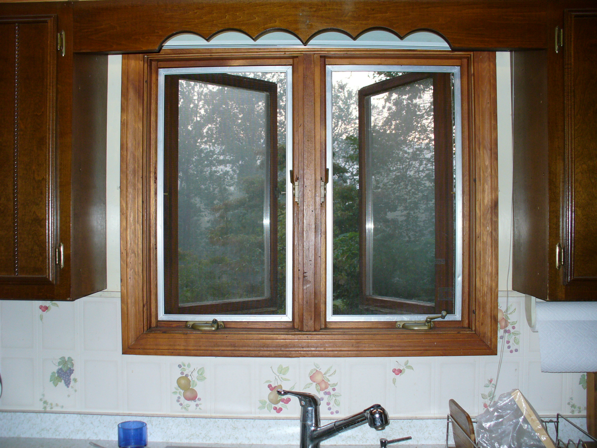 I guess you can't really tell that much difference on the kitchen windows, but they're just nicer, with a much better mechanism. We replaced the bathroom windows, too, but they don't look much different. Again, they're just all much tighter. We should see a difference in our heating bills this winter I imagine (though they're never too bad, what with the amount of wood we burn in the woodstove).