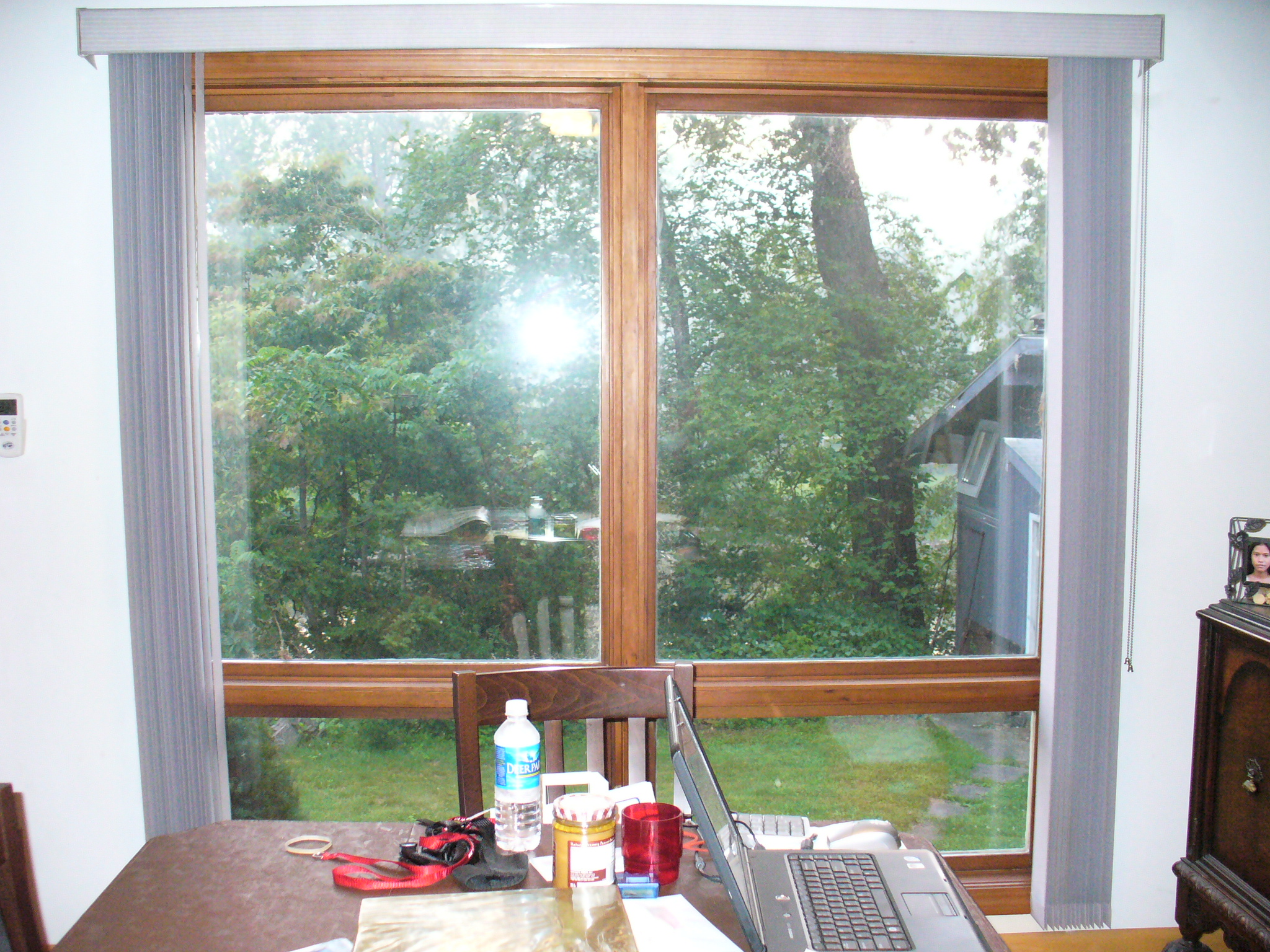 We really like how the new window layout opens up the view better (no mullion down the middle). Also, we've been opening the bottom sliding windows at night, which we never really did with the old awning windows; we get quite a nice breeze going. The work was actually done a couple weeks ago, but the installer just finally came back this past Saturday to fix a problem on 3 of the windows, where the wood on the horizontal mullion had bowed inward. Then Al was able to finish staining all the wood (after much trial and error on the color – but we ended up with what I think is a really good match with the old surrounding wood frame that's still there).