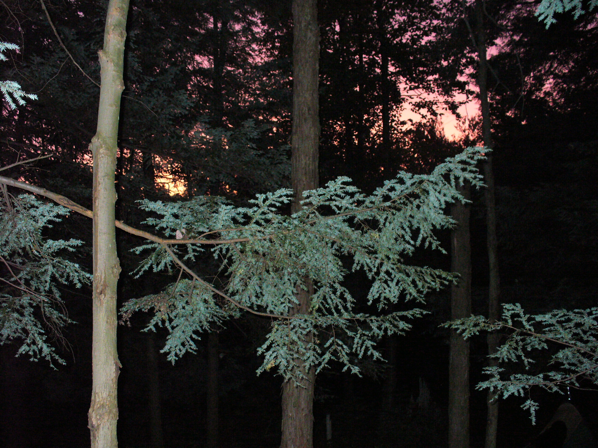 So, for this trip, we parked at Parker Dam State Park, hiked about 2.5 miles, and found a lovely spot in a hemlock grove beside Laurel Run. Hemlock stands are the best in my opinion, because if they’re old enough, they’re clear of underbrush and the branches are high enough to not be in your way, and the ground is nice and soft. Of course, you have to put up with hemlock needles falling into your coffee, but they taste pretty good anyway. Also you have to walk a bit to get good firewood, but usually not far.