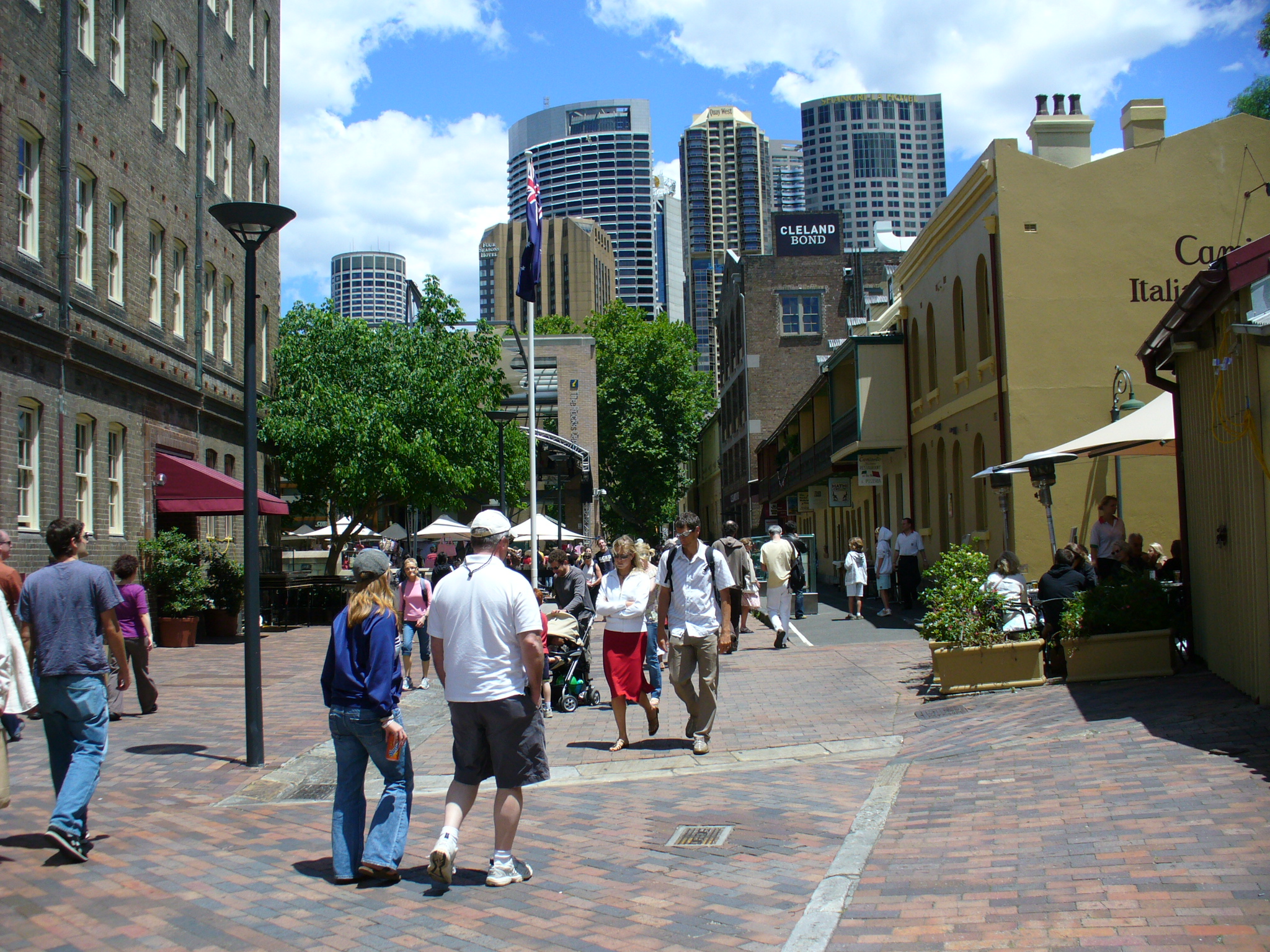 But we followed our designated "walk", which first took us past Cadman's Cottage, and then to the open-air art and crafts market, which we browsed a bit. A lot of the streets are pedestrian-only, cobbled and narrow, and our walk took us up and down several streets that were sets of steps. A very quaint and interesting area.