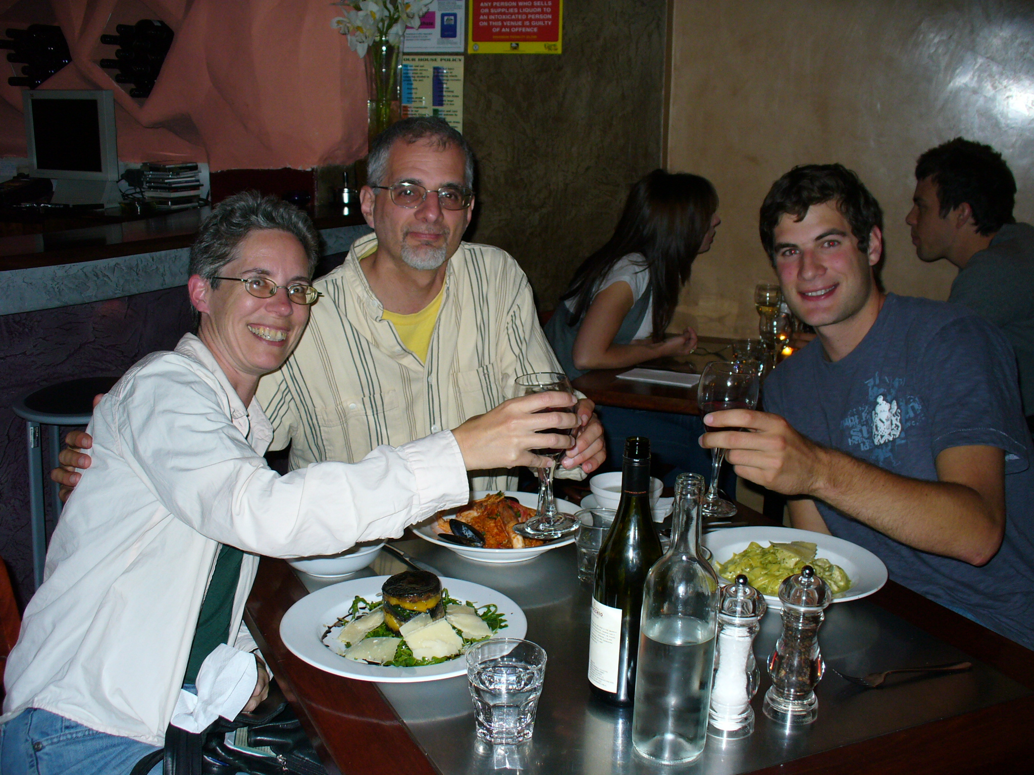 We took the train back to Newtown in the early evening, and walked down King Street looking for somewhere for dinner. The first couple places we tried didn't have any tables, but after some discussion they were able to seat us at an Italian restaurant called Cicciolina. That turned out to be a great choice anyway, because dinner was just great! Nice atmosphere and decor, and delicious food.