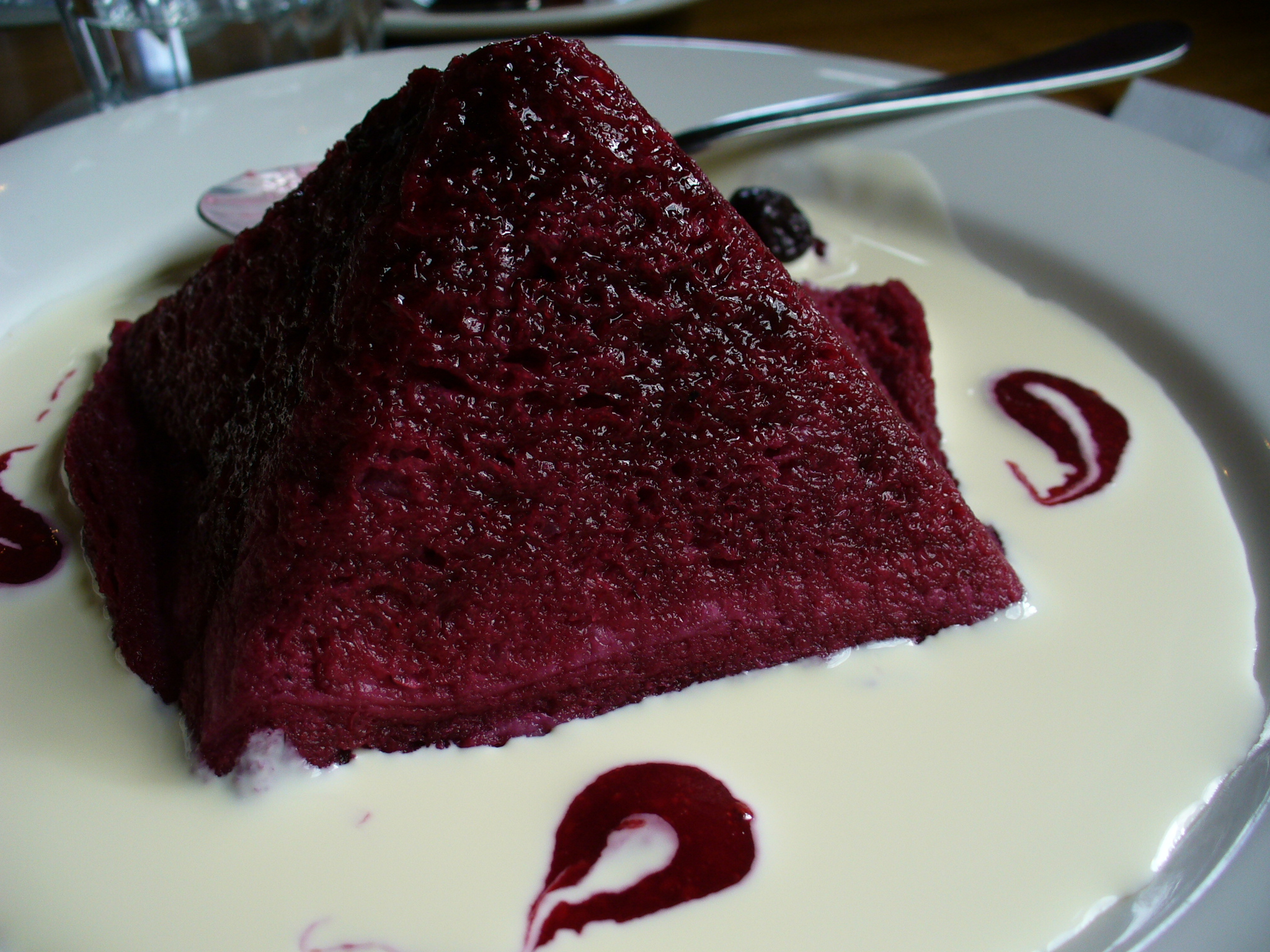 Dessert was not only pretty, but also scrumptious! (I'll need to pull out my thesaurus to continue to describe the food experiences we had in New Zealand.) Mine was a creamy mousse covered with raspberry-soaked triangles of bread formed into a pyramid, with sweet cream and raspberry coulis surrounding it.
