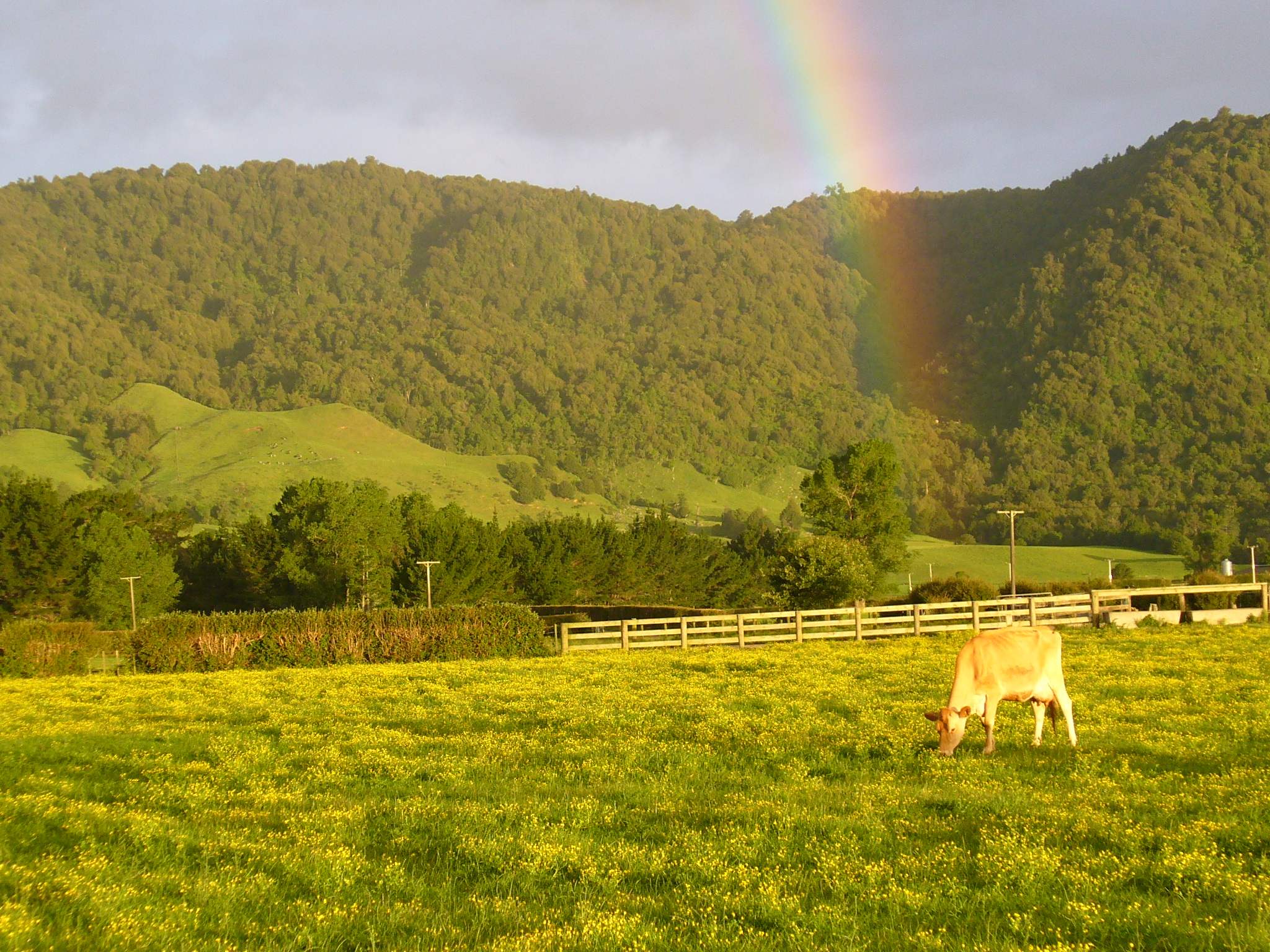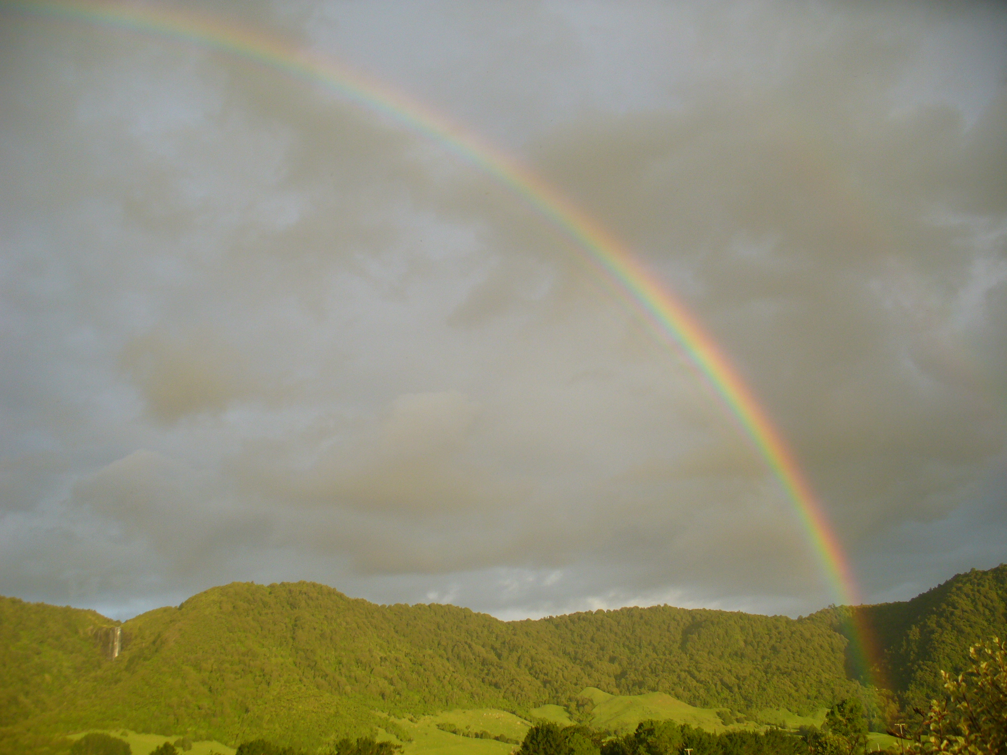 When we got back to the cottage Tuesday evening after dinner in Matamata, we were treated to a dramatic rainbow over Wairere Falls…
