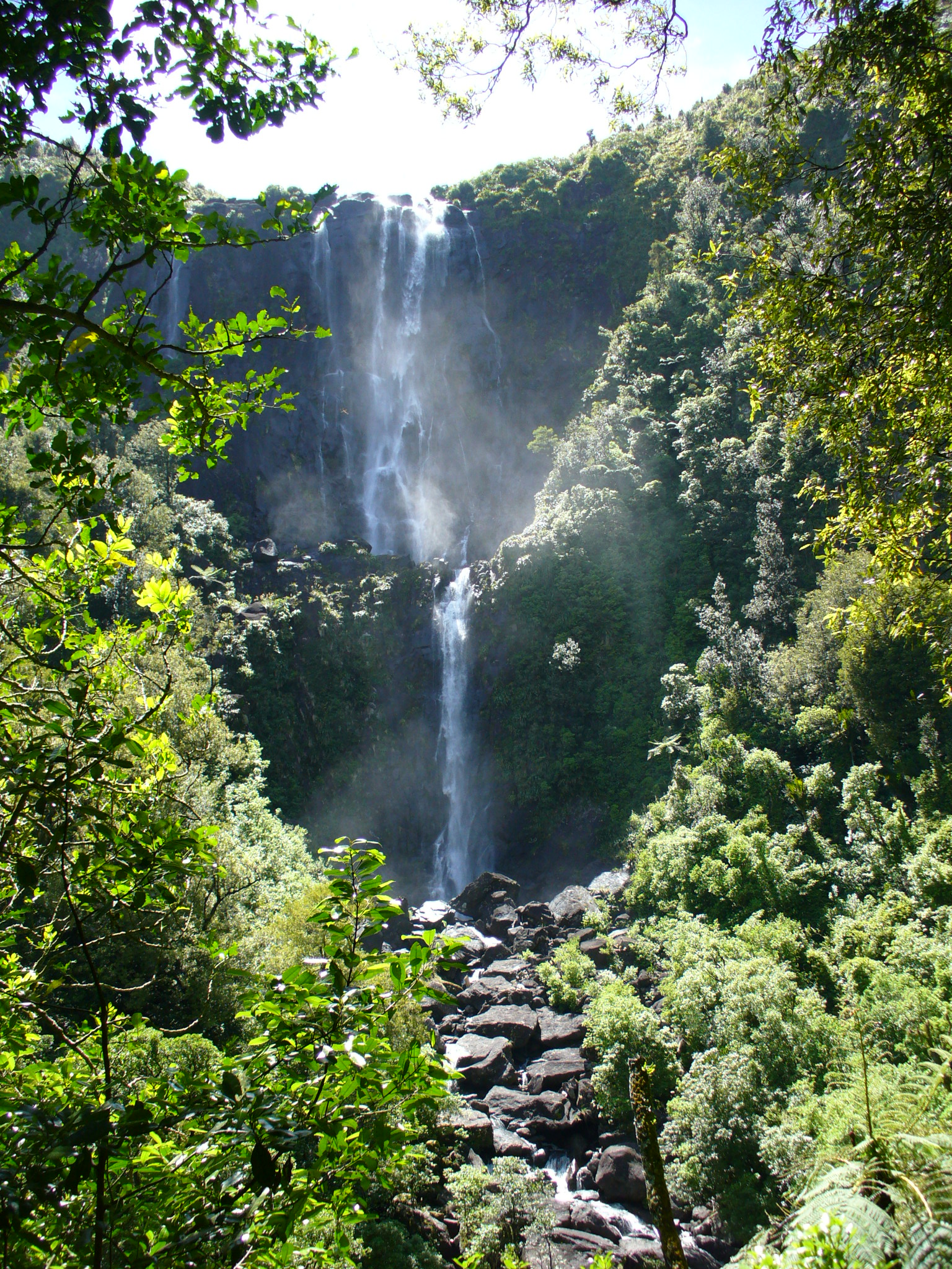 The track wasn’t too bad at first, but soon became extremely steep… steep to the point of needing to grab onto roots and rocks to climb up the path (while hoping that none of the roots and branches were the New Zealand equivalent of poison ivy). The sign at the bottom of the track had said it was 90 minutes to the top of the falls, but what with essentially having to bushwhack, it was more like 2 hours. We were just thankful that it wasn’t too muddy and slippery.