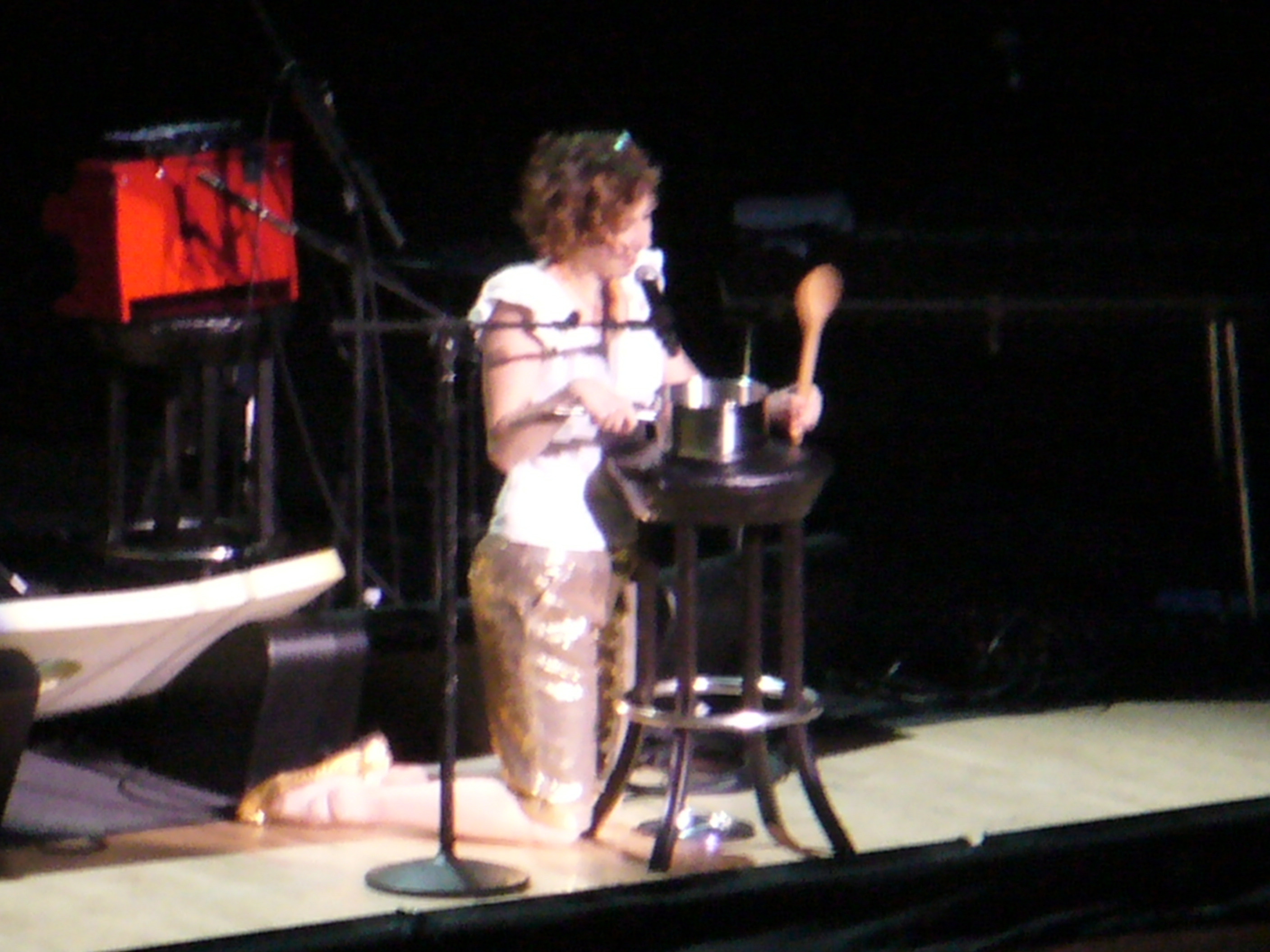 Kristen Schaal (aka Mel) opened for the guys, and she was hilarious! Here, she was performing a one-act play, a sort of love triangle among the pot, spoon, and lid. She "practiced" a number of different styles of jokes on us, from self-deprecating, to political.