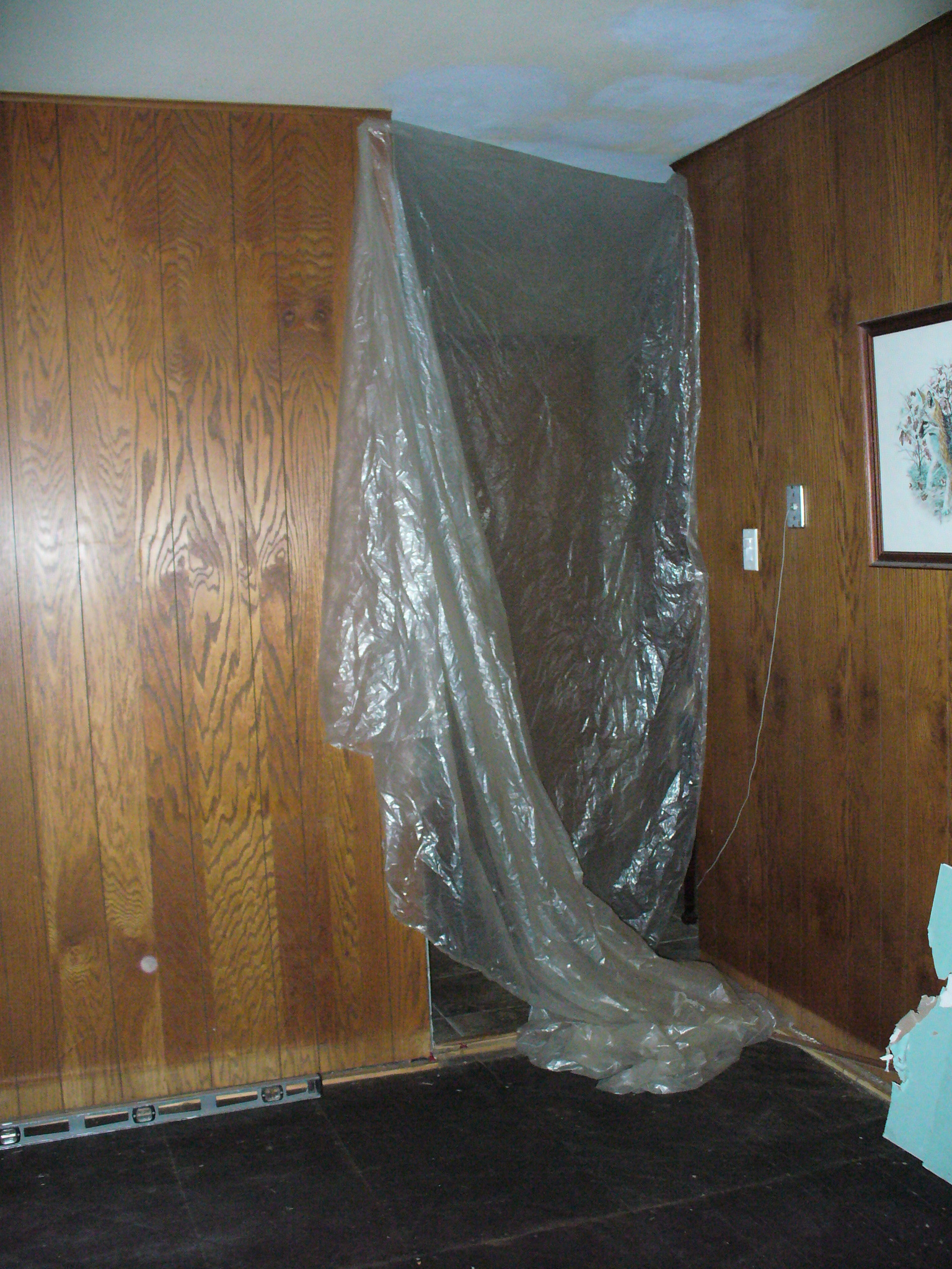 We started by completely gutting the room, down to floor joists and furring strips. Tore off the paneling, took up the carpet & padding & homasote, scraped off the tile. This took about a month. Note that when I say "we", I mostly mean Al, working when he had time :-)