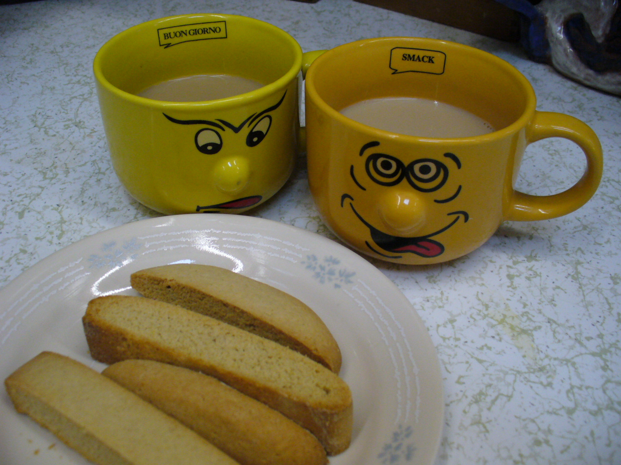 By request, I’m posting my recipe for biscotti, which is sort of a synthesis of several recipes I had found online, but which I found to be the tastiest combination.
