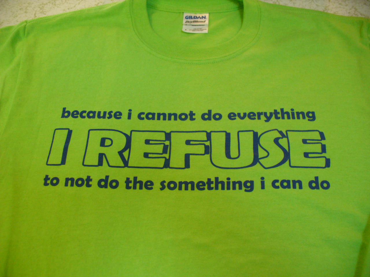 We had our final organizational meeting last night for our trip to Apison. We each got one of these (very bright!) t-shirts… I love the slogan!