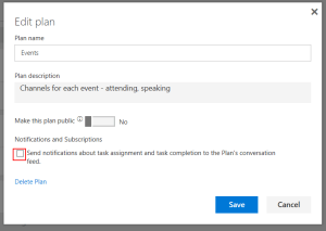 I have a Plan for an O365 Group I created for doing work with a client, so the Group/Plan members are just me and an external (guest) user from the client, whose email is through Google Mail. She’s a member of the Group so she can view SharePoint documents etc, but of course she doesn’t have access to Planner through that account – I’m just using the Plan for my own internal scheduling work on this project. I found yesterday that as I was adding some comments to some Tasks, the client was receiving email updates, though I didn’t have the notification option turned on, nor had she subscribed to email updates (which of course she couldn’t do, anyway). So I did some testing with another Plan in my tenant…