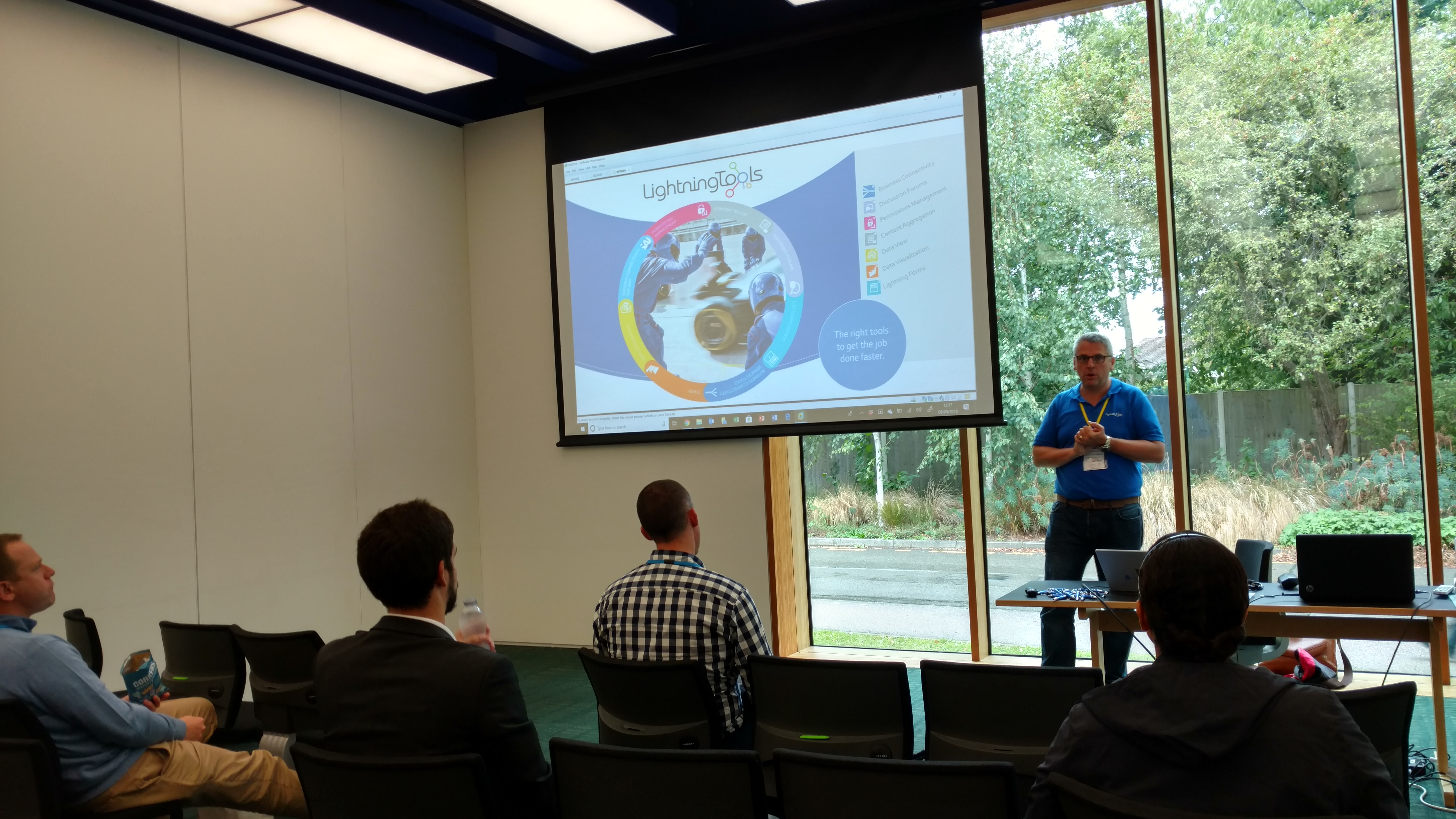Next up was the lunchtime vendor sessions. This is an interesting idea at the Cambridge event, where boxed lunches are provided in the breakout rooms, so to get one, attendees must choose a vendor breakout session to sit in on. Learning while lunching, and good exposure for the vendors also! Naturally, I went to Brett’s session where he gave an overview of the Lightning Tools range of SharePoint tools and web parts, as well as a sneak preview of the new SharePoint Framework web parts being released in October! [Shameless plug, because the new Lightning Conductor, Data Viewer, and Social Squared are SO cool!.]