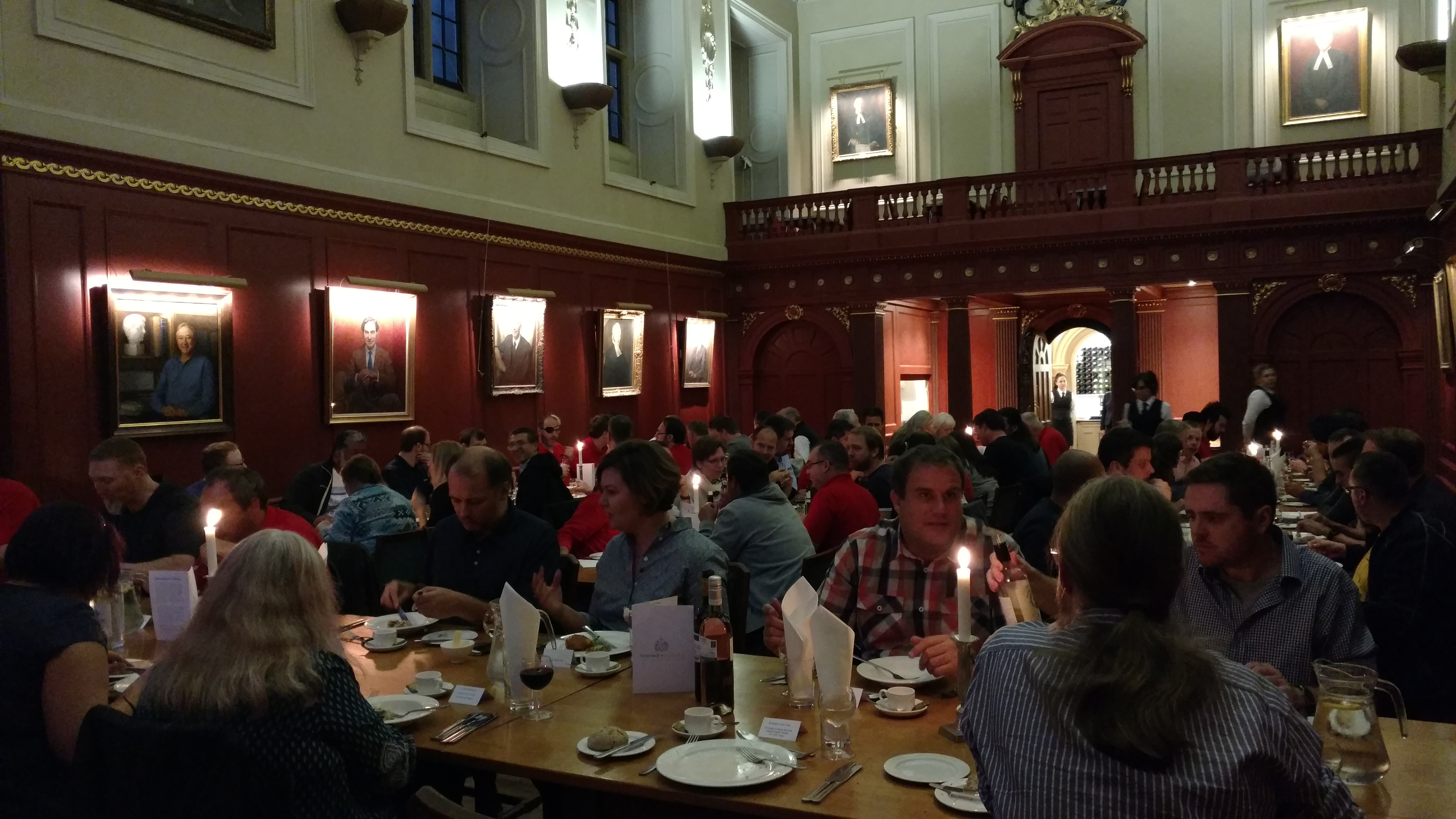 After the prize raffle drawings (again too packed to fit into the room) it was time for a little SharePint at the venue, and then we were taken by bus to the speaker dinner. This was once again a real treat, served in the Great Hall of one of the Cambridge Colleges. And then went out with a bunch of the regulars to a pub (what? 😀 )
